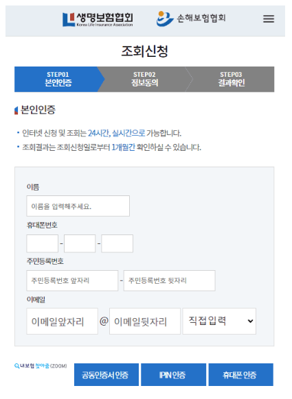 휴면보험금을 조회 하기 위해서 휴대폰인증이나 공인인증서가 필요합니다.