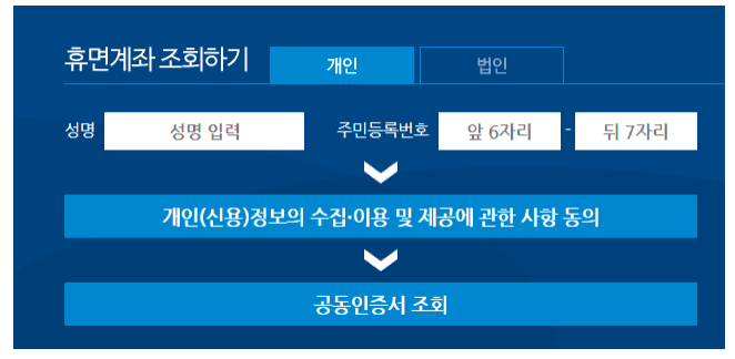 은행•우체국•보험사 휴면계좌를 조회 하기 위해서 공인인증서가 필요 합니다.